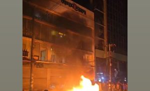 এ সময় প্রথম আলোর কার্যালয় ভবনের সামনে আগুন ধরিয়ে দেওয়া হয়। পাশাপাশি বিক্ষুব্ধ জনতা প্রথম আলো ও ভারতবিরোধী বিভিন্ন স্লোগান দেয়।